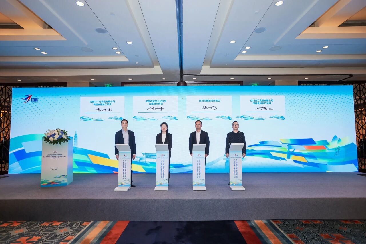 现场举行了重点投资项目签约仪式,成都巧丫巧食品有限公司投资1.5亿元建设鸭血产品、火锅食材加工项目,四川四汇食品有限公司投资2.18亿元建设速冻食品生产项目。此次签约不仅为邛崃绿色食品产业注入新动能,也将进一步强化产业链条,推动产业集聚与升级。
