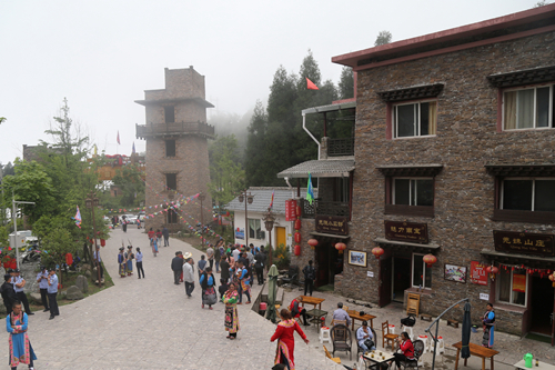搬迁至南宝山的羌族村民是难得的古羌文化坚守人与传承者,为南宝山镇旅游发展注入了新的动力。羌碉、羌文化广场、喊山走廊、祭祀塔等景点,衬托着羌族民居,勾勒出一个“天上的云朵”般的“成都羌寨”。